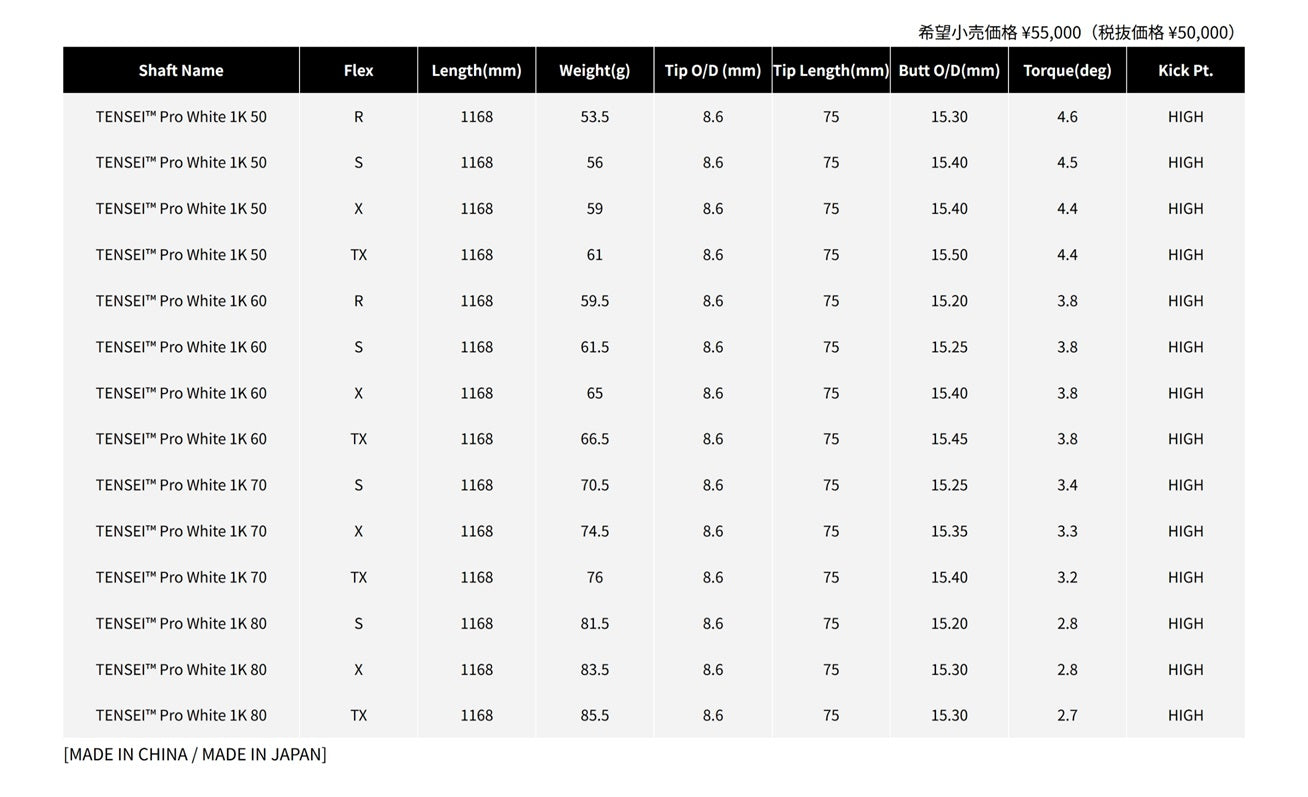 Pro White 1Kシリーズは、”ホワイト系”の特徴である強靭な先端剛性でヘッド挙動を安定させ、「芯でとらえるインパクト」で方向安定性と低スピンの強弾道を実現します。バット部にしなやかで効率的に補強効果を発揮する1Kクロスを配置して、切り返しで深いタメを作り、インパクトまでスト レスなく振りぬくことができます。