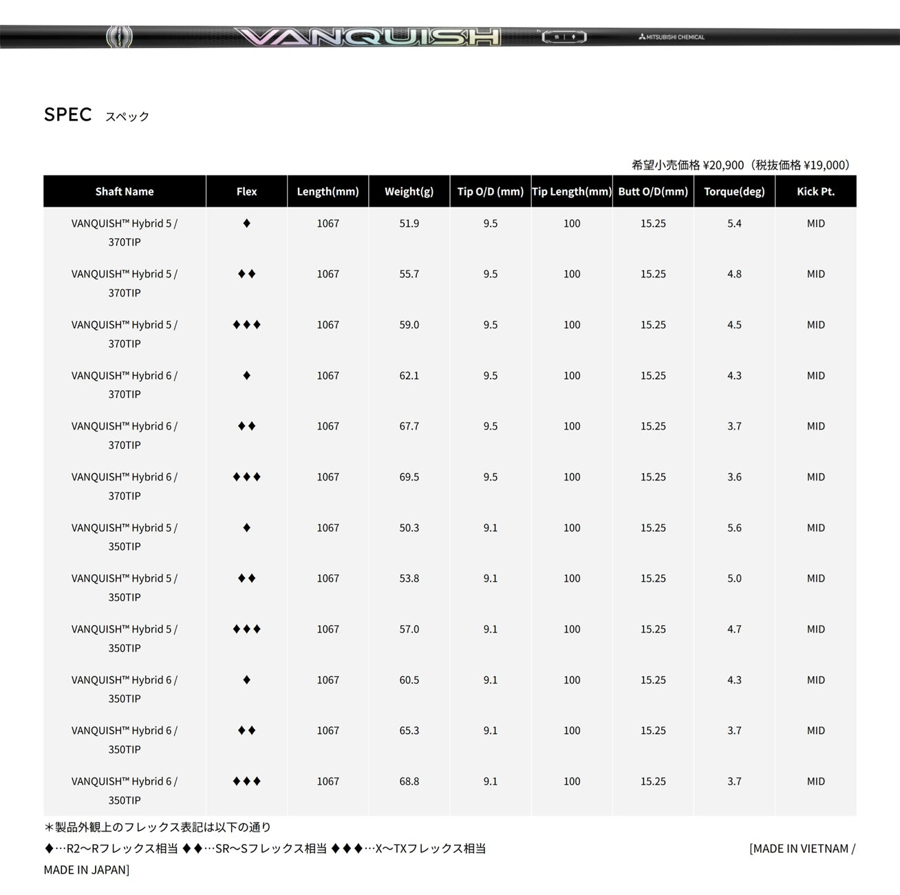 MITSUBISHIケミカル VANQUISH ハイブリッド 5 370Tip