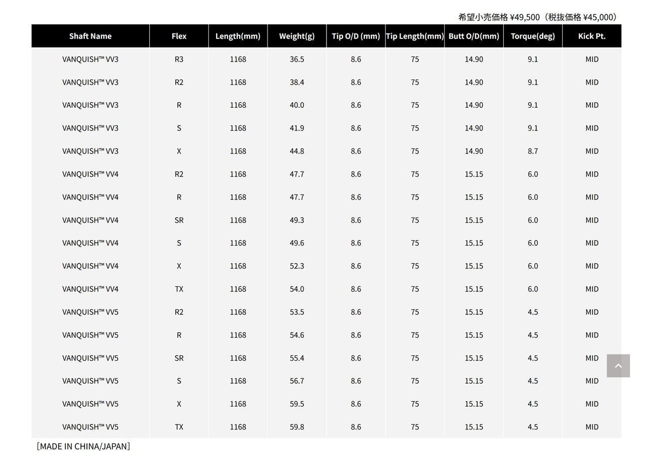 VVシリーズはシャフト中間部のしなりがスイング中のトップからインパクトに向けてしっかりとスピードに変換されるため、飛距離効率に優れています。
