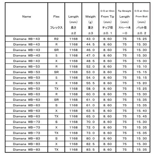 MITSUBISHIケミカル ディアマナ WBシリーズ 43 53 63 73 83